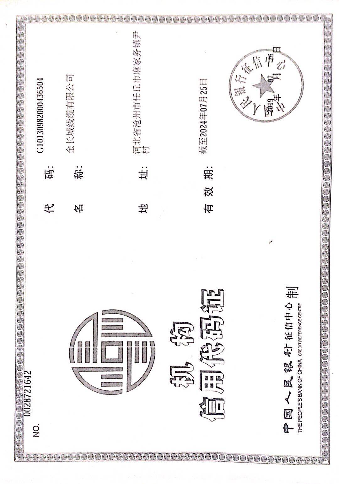 信用机构代码证
