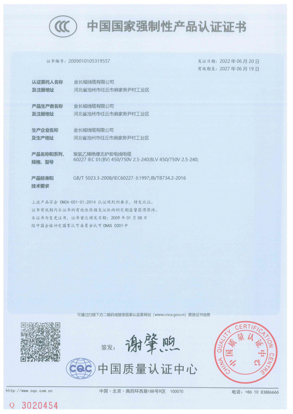 中国国家强制性产品认证证书